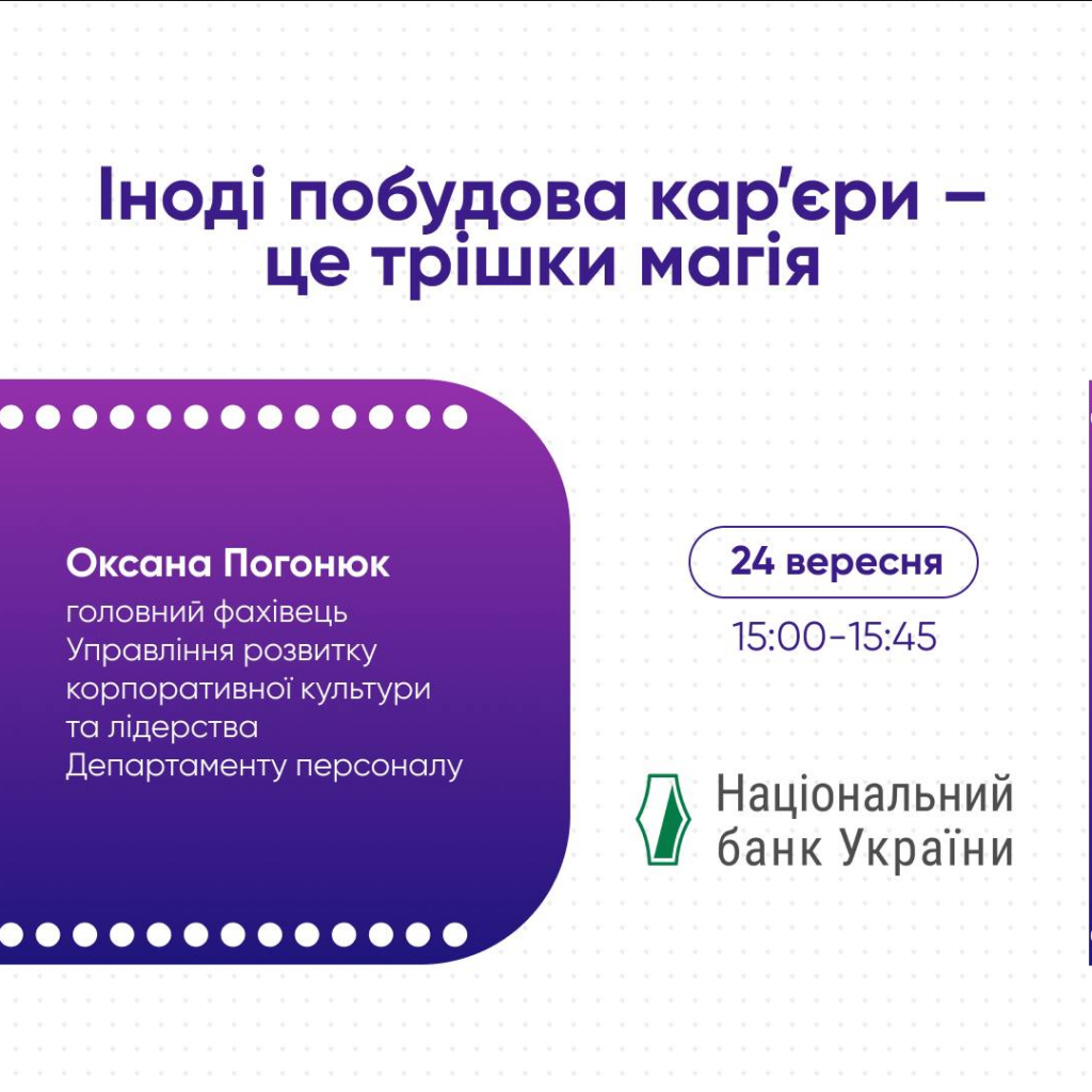 Спікерка: Оксана Погонюк, головний фахівець Управління розвитку корпоративної культури та лідерства Департаменту персоналу