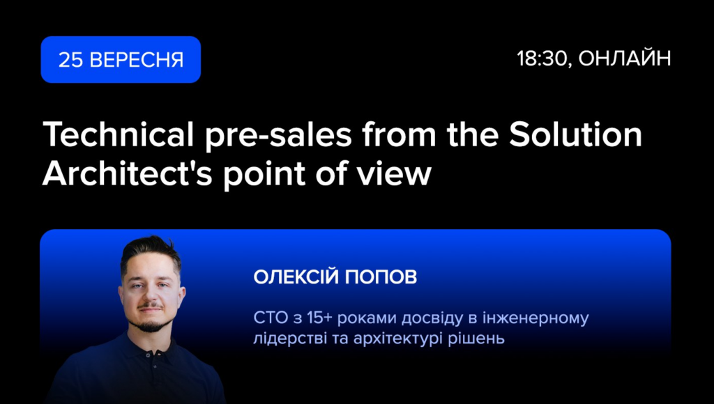 “Technical Pre-Sales from the Solution Architect’s Point of View” — це зустріч, де покажуть як працює SA, що очікує бізнес і які інструменти справді допомагають у роботі.