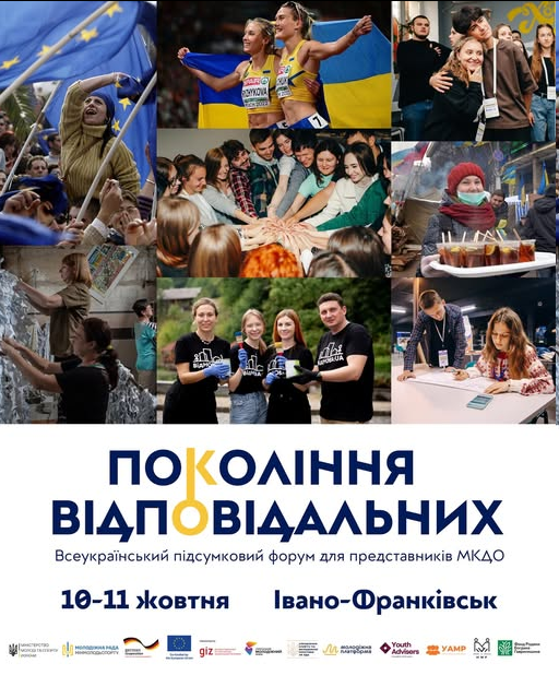 Всеукраїнський підсумковий форум для представників молодіжних консультативно-дорадчих органів «Покоління відповідальних організовується Міністерством молоді та спорту України спільно з Молодіжною радою при Міністерстві молоді та спорту України, Управлінням спорту та молодіжної політики Івано-Франківської ОДА, Українським молодіжним фондом, ГО “Молодіжна платформа”, ГО «Українська асоціація молодіжних рад», Меморандумом молодіжних рад, Національним об’єднанням радників з питань молоді за підтримки Deutsche Gesellschaft für Internationale Zusammenarbeit (GIZ) та у партнерстві з Фондом Родини Богдана Гаврилишина.